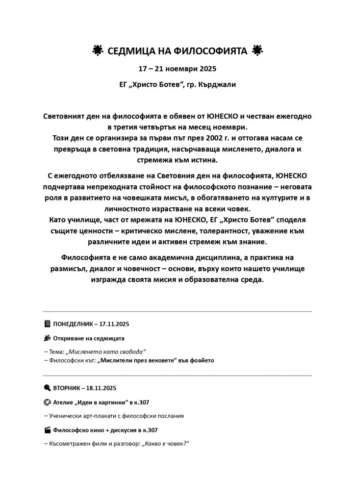 Зрелостниците на ЕГ „Христо Ботев“ град Кърджали Антония Босева, Георги Папратилов, Мария-Анна Димитрова и Костадин Костадинов от 12. клас се завърнаха с награди от ХXXIII Национален конкурс под надслов „Българският принос в света на науката, технологиите и иновациите“. На 14 ноември 2025 г. в музея „Земята и хората“, в град София се състоя тържествената церемония по награждаването на отличените.